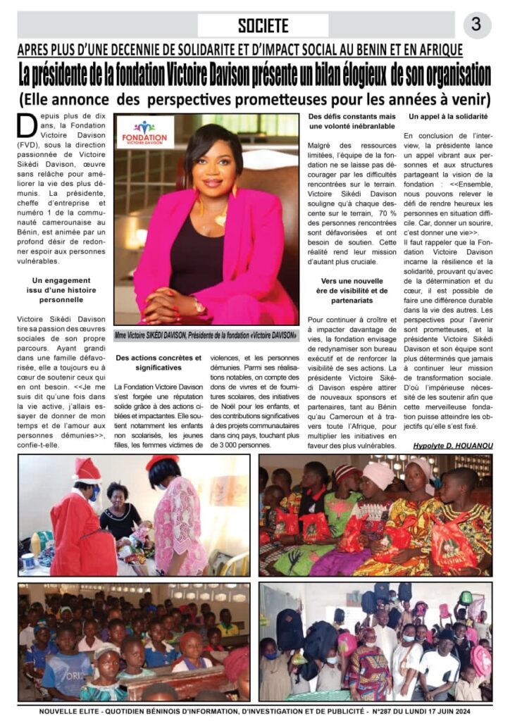 Victoire DAVISON est une fondation qui contribue à l’épanouissement de toutes les couches de la société.